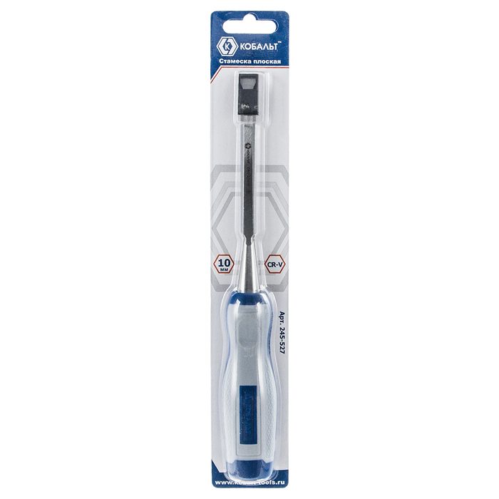 Стамеска плоская КОБАЛЬТ 10 х 140 мм, CR-V, двухкомпонентная рукоятка, подвес (245-527) - цена, фото, технические характеристики