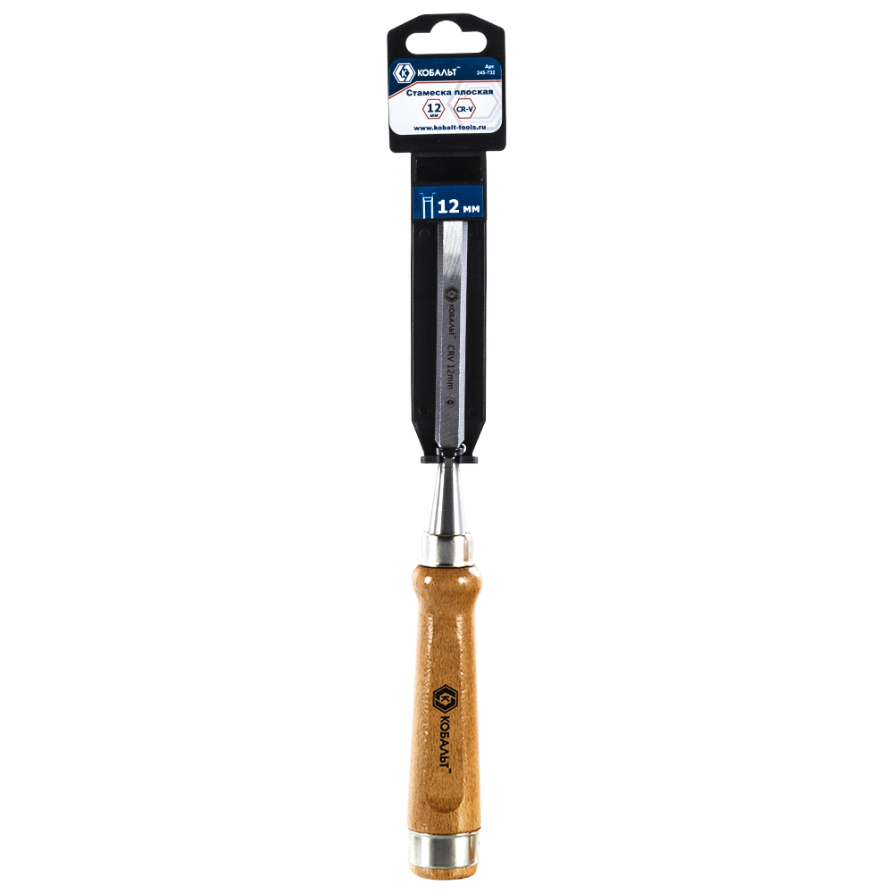 Стамеска плоская КОБАЛЬТ 12 х 140 мм, CR-V, деревянная рукоятка, подвес (245-732) - цена, фото, технические характеристики
