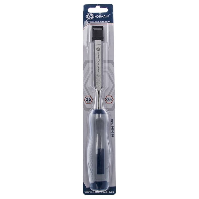 Стамеска плоская КОБАЛЬТ 16 х 140 мм, CR-V, двухкомпонентная рукоятка, подвес (245-558) - цена, фото, технические характеристики