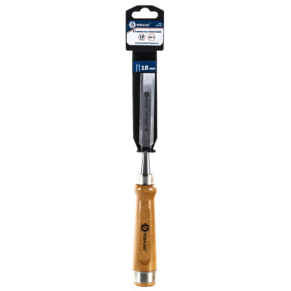 Стамеска плоская КОБАЛЬТ 18 х 140 мм, CR-V, деревянная рукоятка, подвес (245-763) - цена, фото, технические характеристики