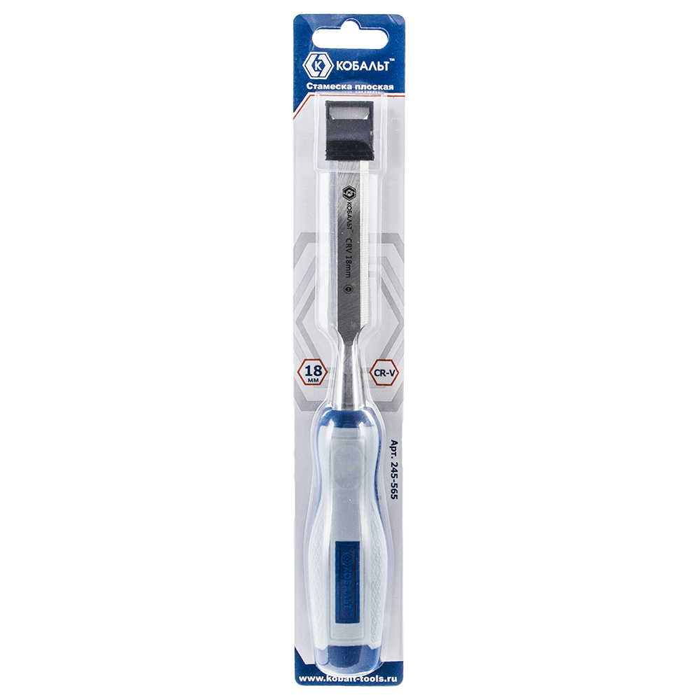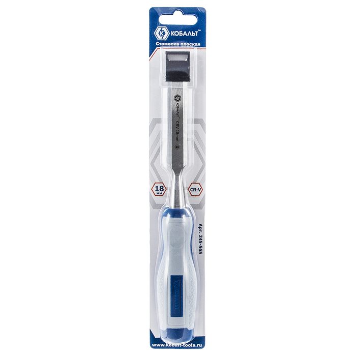 Стамеска плоская КОБАЛЬТ 18 х 140 мм, CR-V, двухкомпонентная рукоятка, подвес (245-565) - цена, фото, технические характеристики