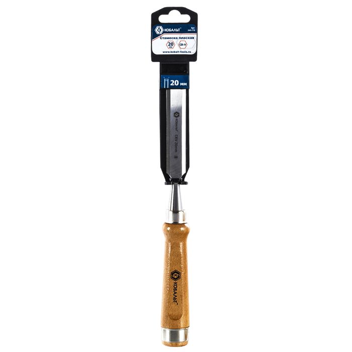 Стамеска плоская КОБАЛЬТ 20 х 140 мм, CR-V, деревянная рукоятка, подвес (245-770) - цена, фото, технические характеристики