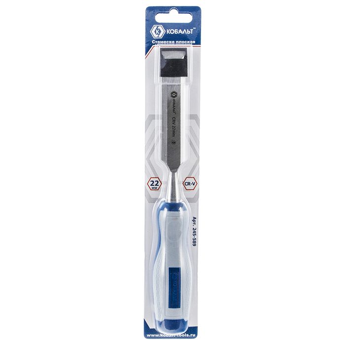 Стамеска плоская КОБАЛЬТ 22 х 140 мм, CR-V, двухкомпонентная рукоятка, подвес (245-589) - цена, фото, технические характеристики