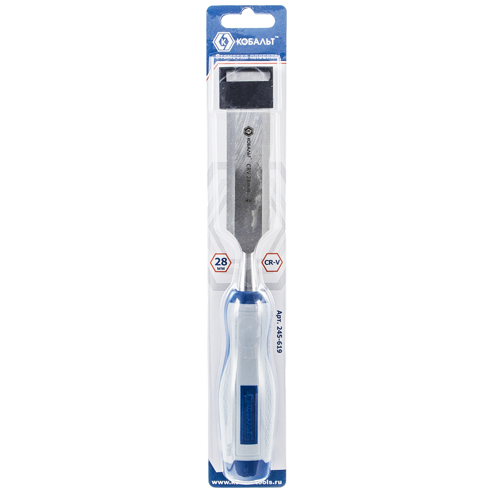 Стамеска плоская КОБАЛЬТ 28 х 140 мм, CR-V, двухкомпонентная рукоятка, подвес (245-619) - цена, фото, технические характеристики
