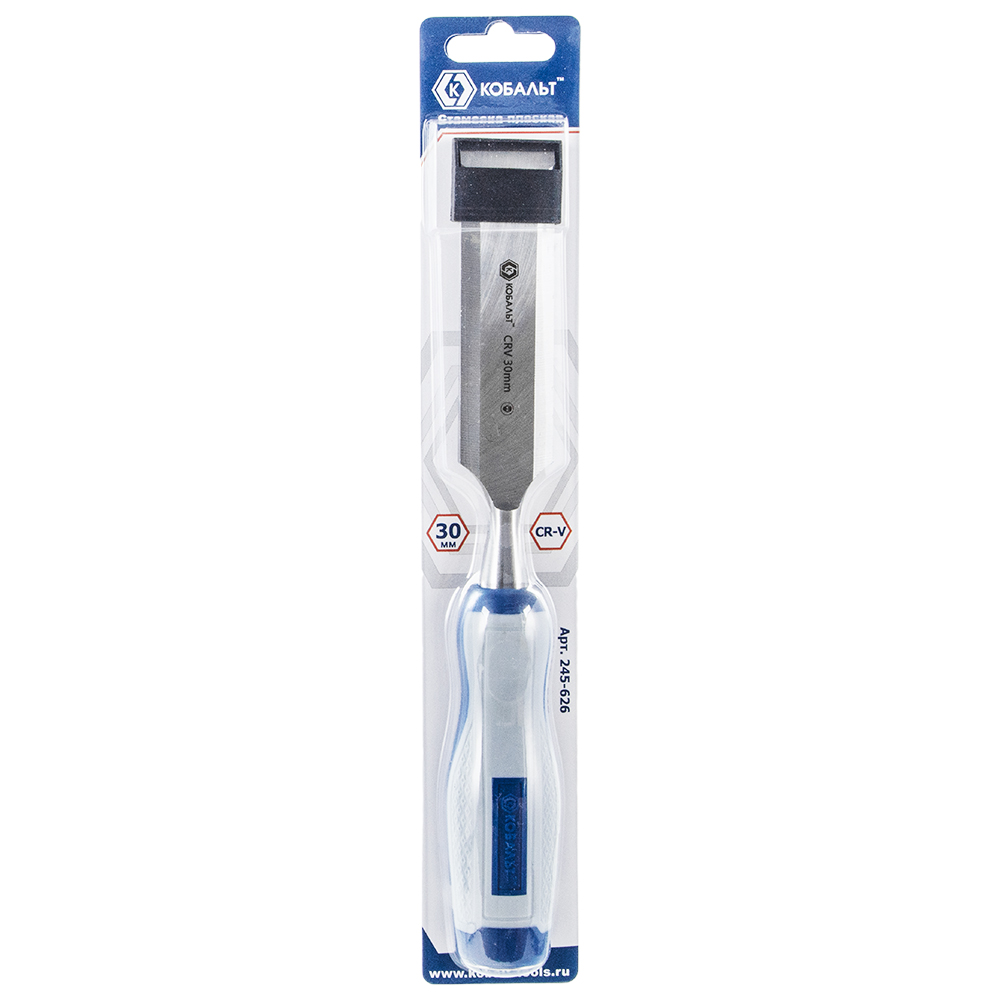 Стамеска плоская КОБАЛЬТ 30 х 140 мм, CR-V, двухкомпонентная рукоятка, подвес (245-626) - цена, фото, технические характеристики