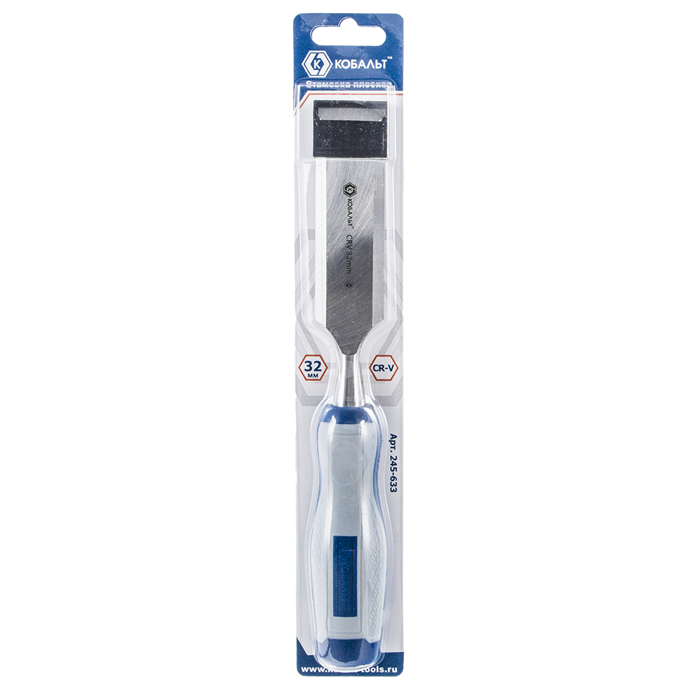 Стамеска плоская КОБАЛЬТ 32 х 140 мм, CR-V, двухкомпонентная рукоятка, подвес (245-633) - цена, фото, технические характеристики