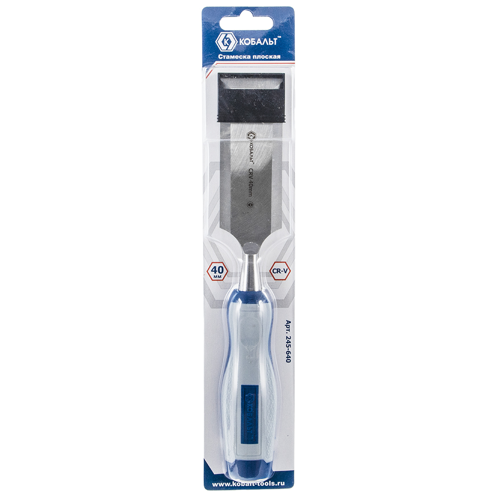 Стамеска плоская КОБАЛЬТ 40 х 140 мм, CR-V, двухкомпонентная рукоятка, подвес (245-640) - цена, фото, технические характеристики
