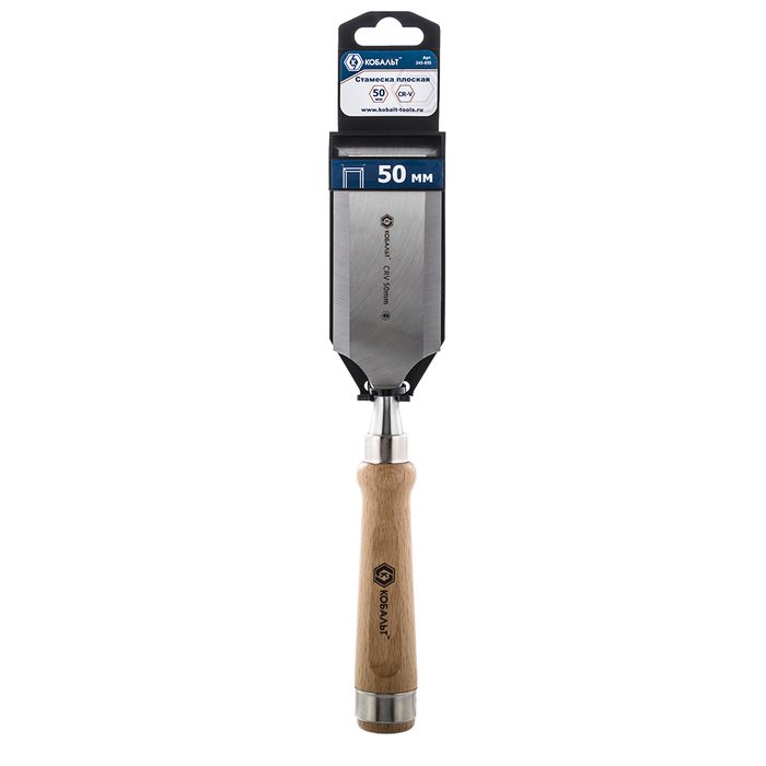 Стамеска плоская КОБАЛЬТ 50 х 140 мм, CR-V, деревянная рукоятка, подвес (245-855) - цена, фото, технические характеристики