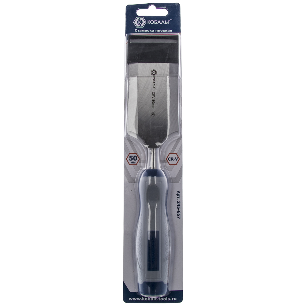 Стамеска плоская КОБАЛЬТ 50 х 140 мм, CR-V, двухкомпонентная рукоятка, подвес (245-657) - цена, фото, технические характеристики