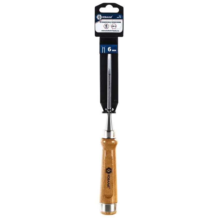 Стамеска плоская КОБАЛЬТ 6 х 140 мм, CR-V, деревянная рукоятка, подвес (245-701) - цена, фото, технические характеристики