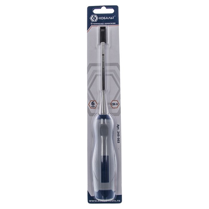 Стамеска плоская КОБАЛЬТ 6 х 140 мм, CR-V, двухкомпонентная рукоятка, подвес (245-503) - цена, фото, технические характеристики