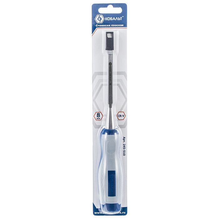Стамеска плоская КОБАЛЬТ 8 х 140 мм, CR-V, двухкомпонентная рукоятка, подвес (245-510) - цена, фото, технические характеристики