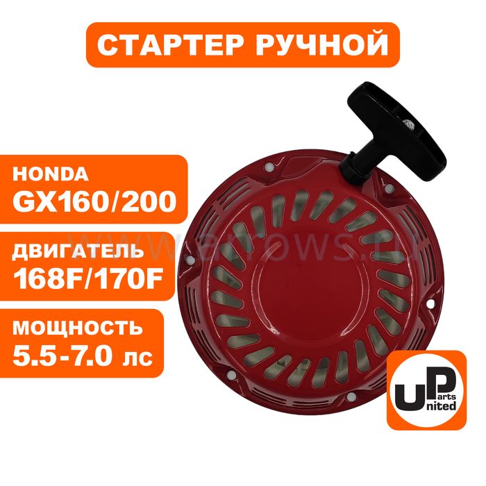Стартер ручной UNITED PARTS для двигателя LONCIN 168/170F, HONDA GX160/GX200, плоские метал. собачки HONDA GX160/GX200, плоские метал. собачки