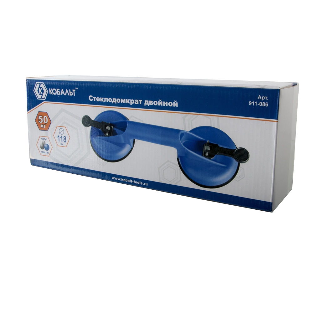 Стеклодомкрат КОБАЛЬТ двойной, пластиковый, подъём до 50 кг, диаметр присосок 118 мм, коробка (911-086) - цена, фото, технические характеристики