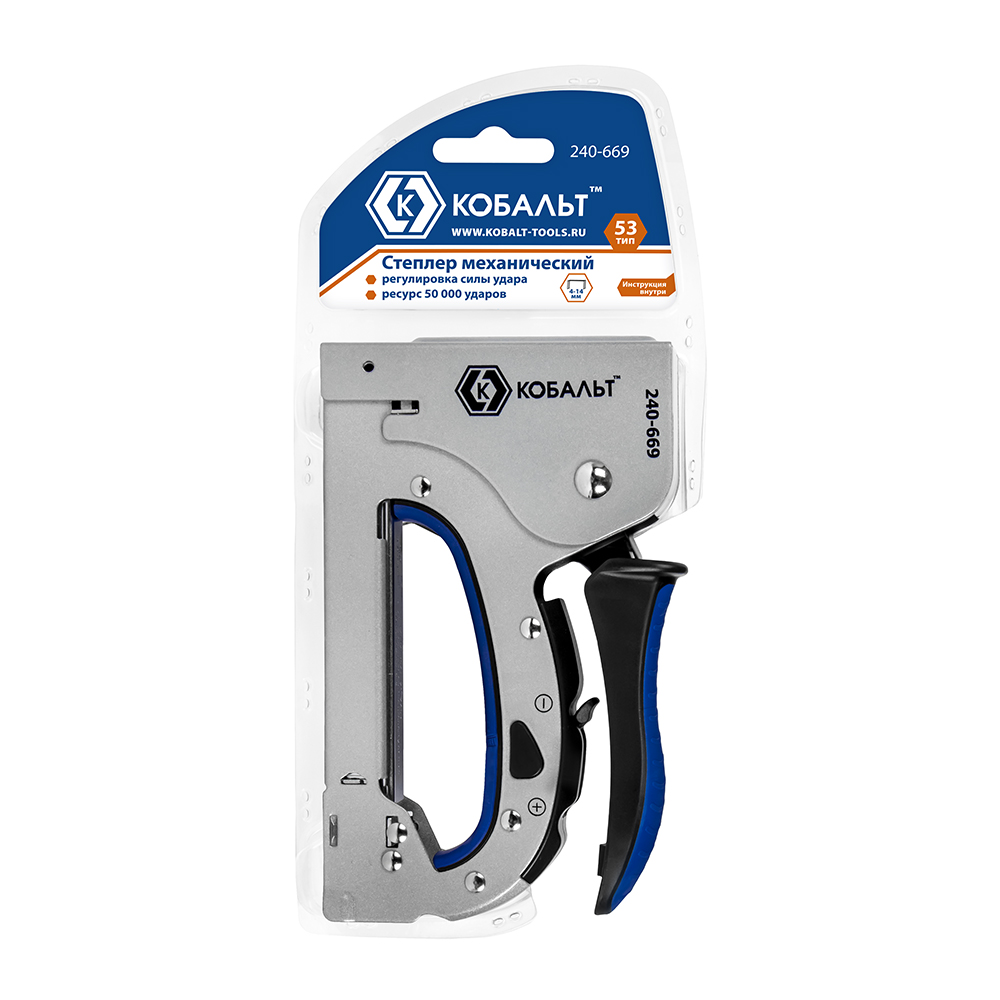 Степлер механический КОБАЛЬТ скобы 4-14мм, тип 53, цел/мет. корпус, рег.удара, прорез. рук-ка, индикатор перезарядки (240-669) - цена, фото, технические характеристики