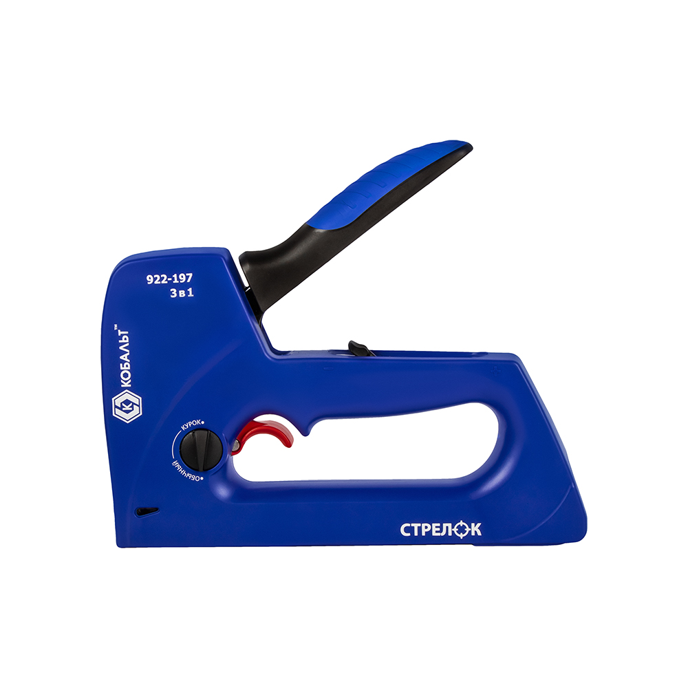 Степлер механический КОБАЛЬТ СТРЕЛОК, пласт.корп., скобы 6-14 мм, тип 53, шпильки 12-14 мм, гвозди 14 мм, рег.удара, спуск.крючок (922-197) - цена, фото, технические характеристики