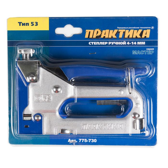 Степлер механический ПРАКТИКА скобы 4-14 мм, тип 53, серия "Мастер", регулировка удара, блистер (775-730) - цена, фото, технические характеристики