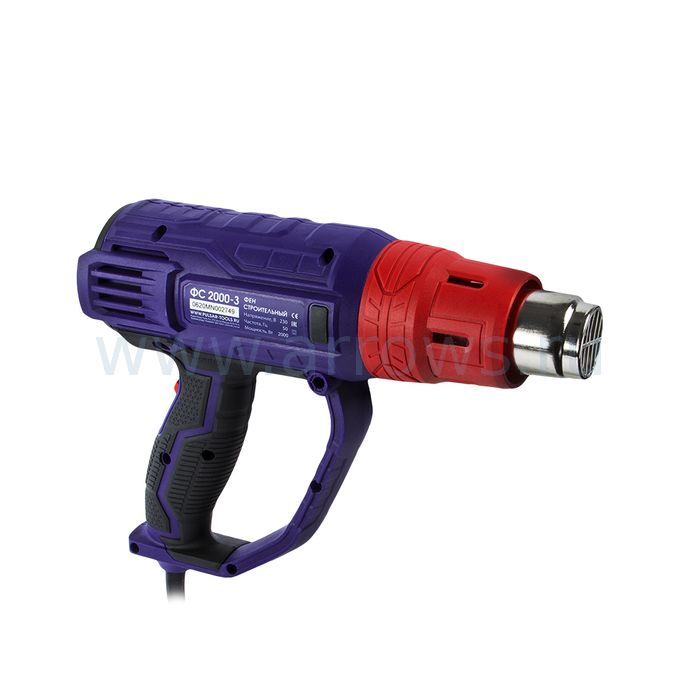 Строительный фен ПУЛЬСАР ФС 2000-3 (2000Вт, 60-600*C, 300/500л/мин, 0,9кг, кейс + 4 насадки) - цена, фото, технические характеристики