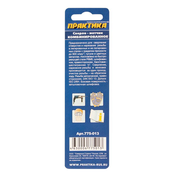 Сверло метчик ПРАКТИКА М10 шаг 1,5, длина 72 мм, хвостовик HEX 1/4', блистер (775-013) - цена, фото, технические характеристики