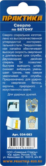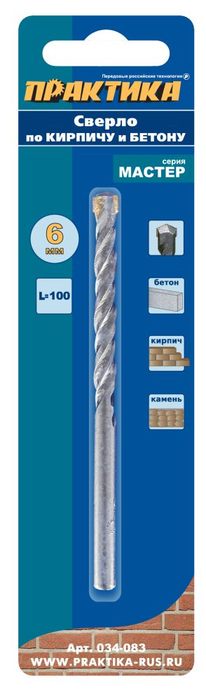 Сверло по бетону ПРАКТИКА 6 х 100 мм (1шт.) блистер, серия Мастер (034-083) серия Мастер