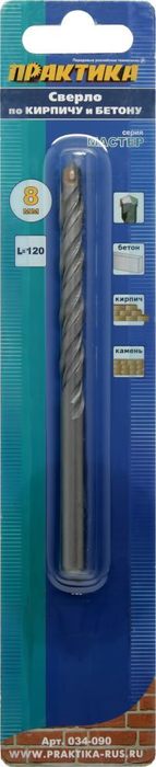 Сверло по бетону ПРАКТИКА 8 х 120 мм (1шт.) блистер, серия Мастер (034-090) - цена, фото, технические характеристики
