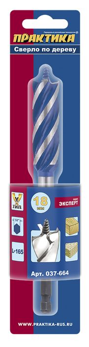 Сверло по дереву Х-тип ПРАКТИКА 18 х 165 мм (1шт.) блистер (037-664) - цена, фото, технические характеристики