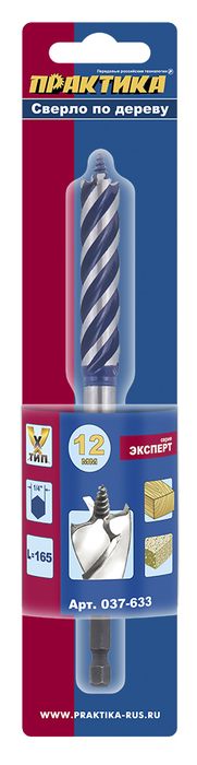 Сверло по дереву Х-тип ПРАКТИКА 12 х 165 мм (1шт.) блистер (037-633) (1шт.) блистер