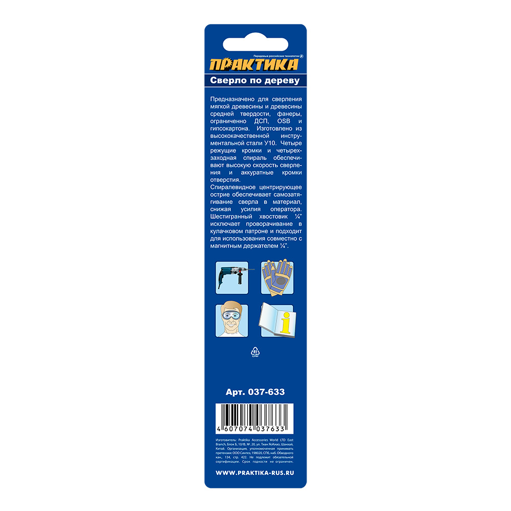 Сверло по дереву Х-тип ПРАКТИКА 12 х 165 мм (1шт.) блистер (037-633) - цена, фото, технические характеристики