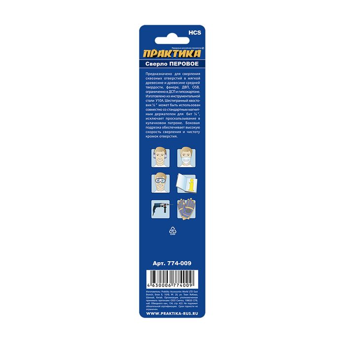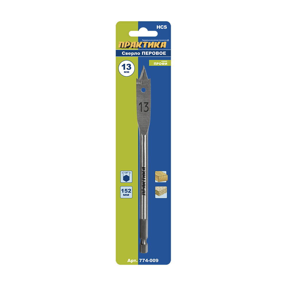Сверло по дереву перовое ПРАКТИКА 13 х 152 мм (1шт.) блистер (774-009) - цена, фото, технические характеристики