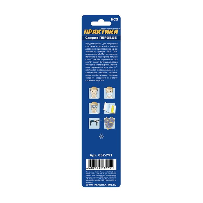 Сверло по дереву перовое ПРАКТИКА 14 х 152 мм (1шт.) блистер (032-751) - цена, фото, технические характеристики