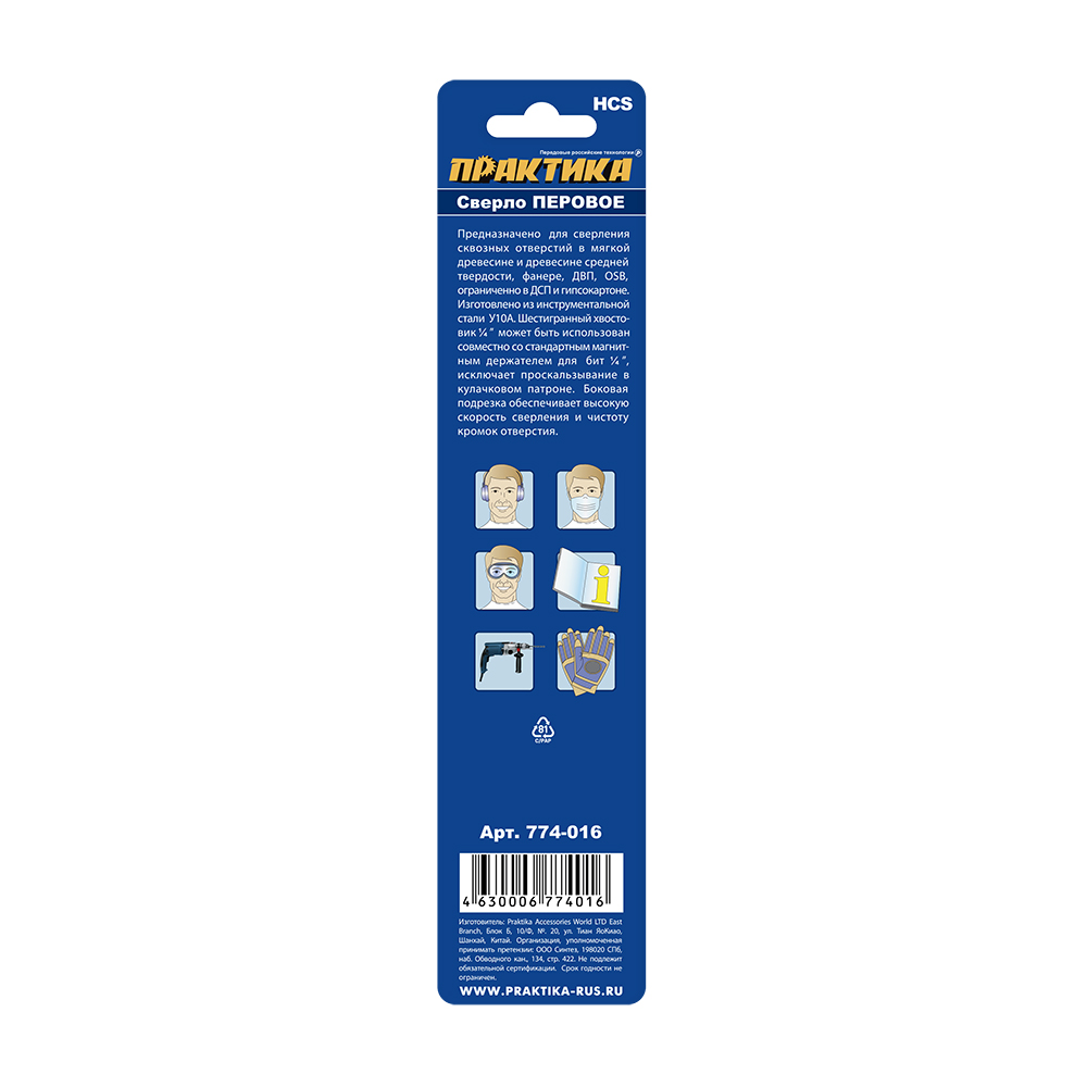 Сверло по дереву перовое ПРАКТИКА 15 х 152 мм (1шт.) блистер (774-016) - цена, фото, технические характеристики