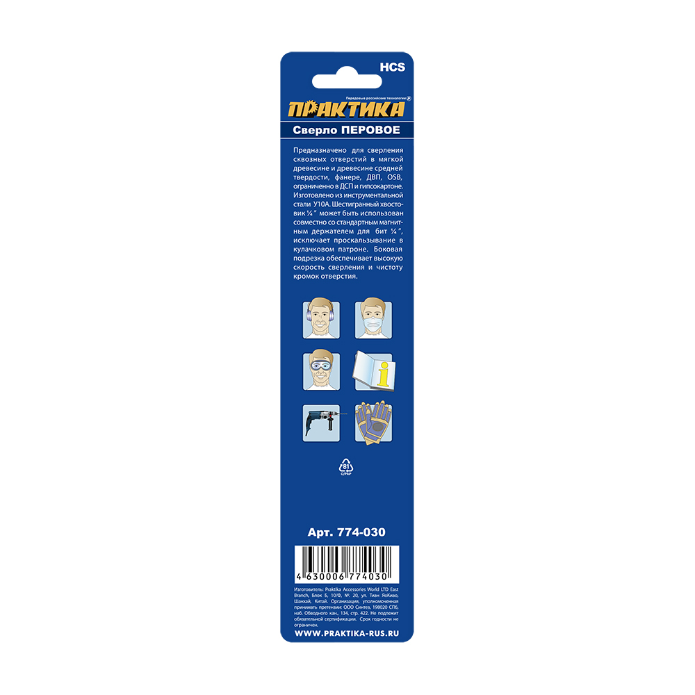 Сверло по дереву перовое ПРАКТИКА 19 х 152 мм 1шт.) блистер (774-030) - цена, фото, технические характеристики