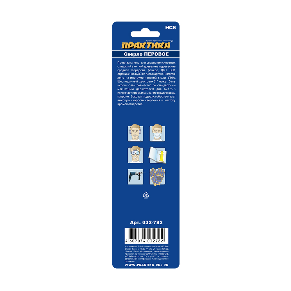 Сверло по дереву перовое ПРАКТИКА 20 х 152 мм (1шт.) блистер (032-782) - цена, фото, технические характеристики
