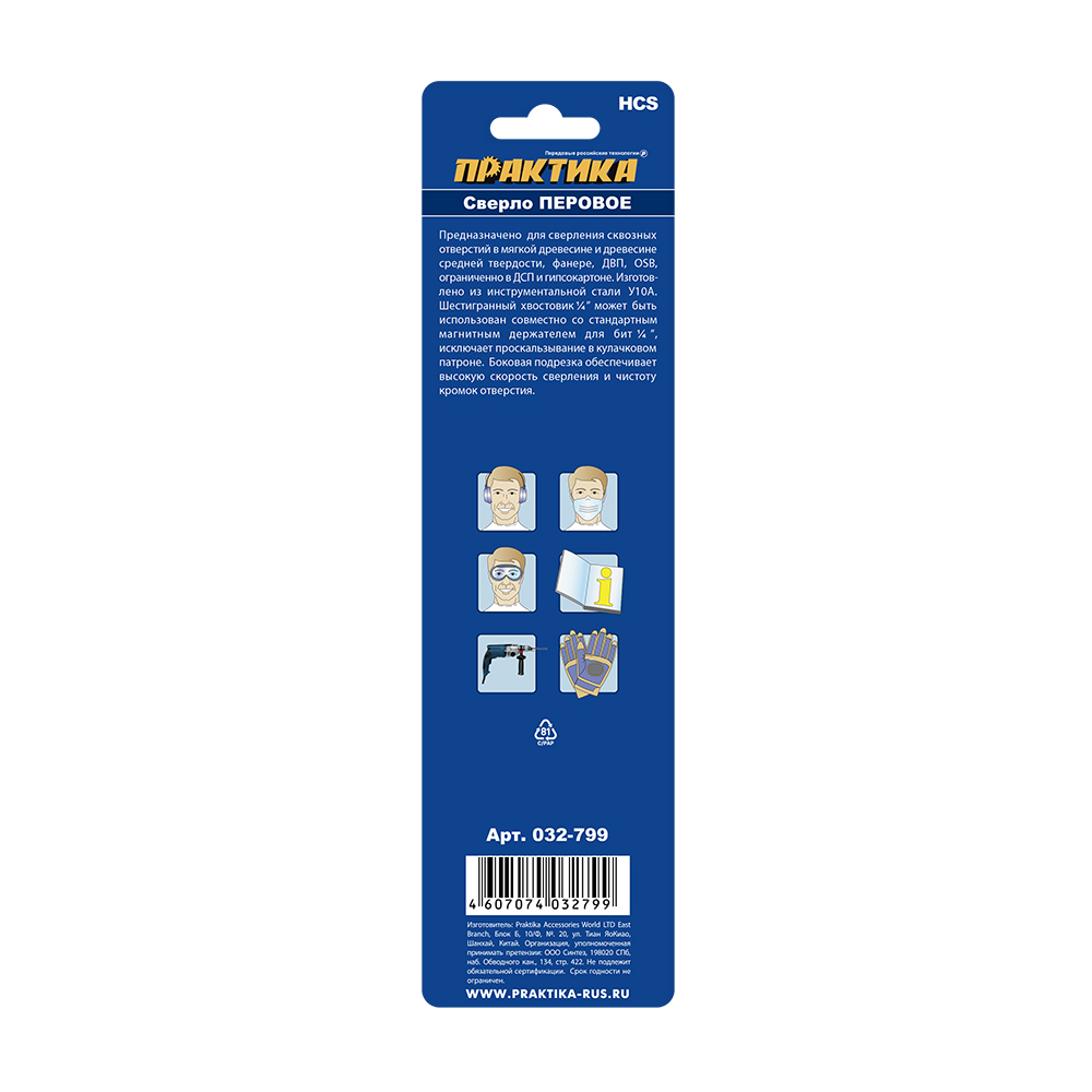 Сверло по дереву перовое ПРАКТИКА 22 х 152 мм (1шт.) блистер (032-799) - цена, фото, технические характеристики