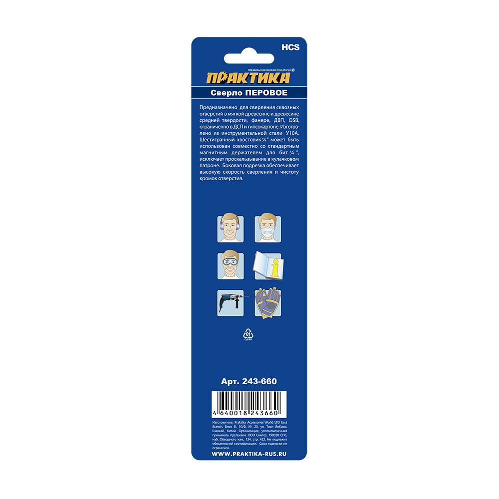 Сверло по дереву перовое ПРАКТИКА 23 х 152 мм (1шт.) блистер (243-660) - цена, фото, технические характеристики