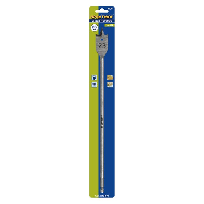 Сверло по дереву перовое ПРАКТИКА 23 х 300 мм (1шт.) блистер (243-677) - цена, фото, технические характеристики