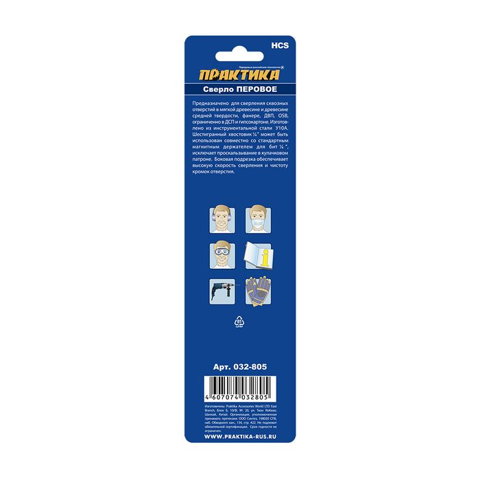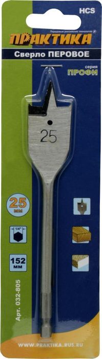 Сверло по дереву перовое ПРАКТИКА 25 х 152 мм (1шт.) блистер (032-805) - цена, фото, технические характеристики