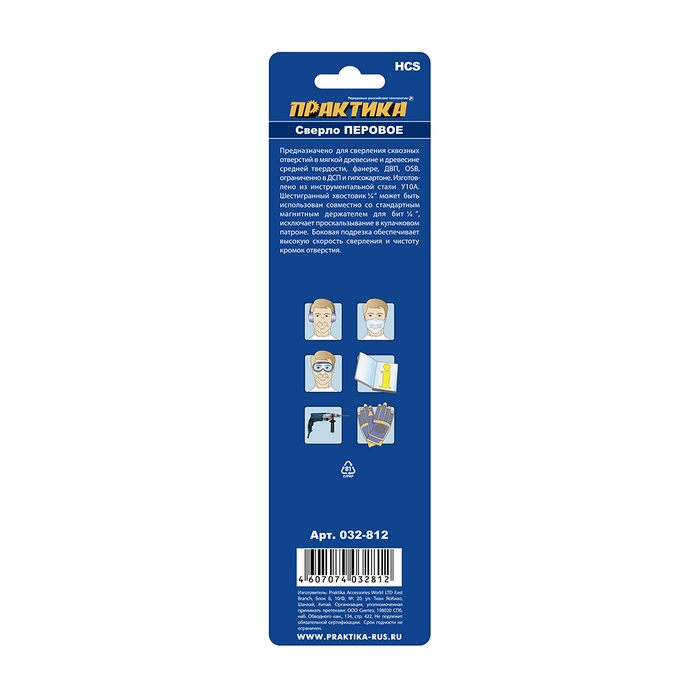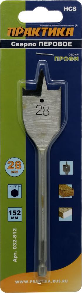 Сверло по дереву перовое ПРАКТИКА 28 х 152 мм (1шт.) блистер (032-812) - цена, фото, технические характеристики
