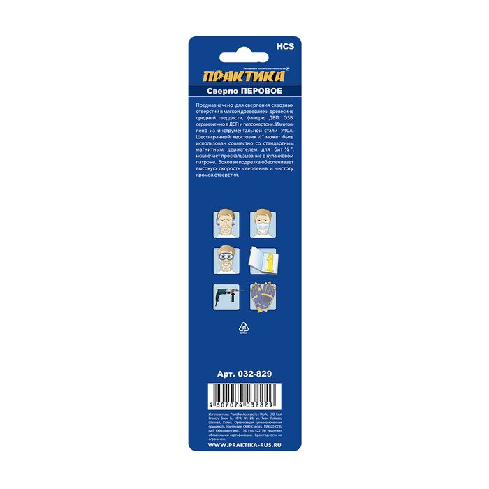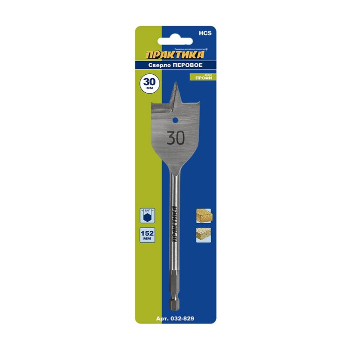 Сверло по дереву перовое ПРАКТИКА 30 х 152 мм (1шт.) блистер (032-829) - цена, фото, технические характеристики