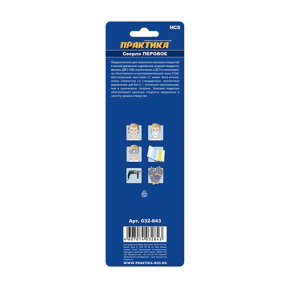 Сверло по дереву перовое ПРАКТИКА 35 х 152 мм (1шт.) блистер (032-843) - цена, фото, технические характеристики