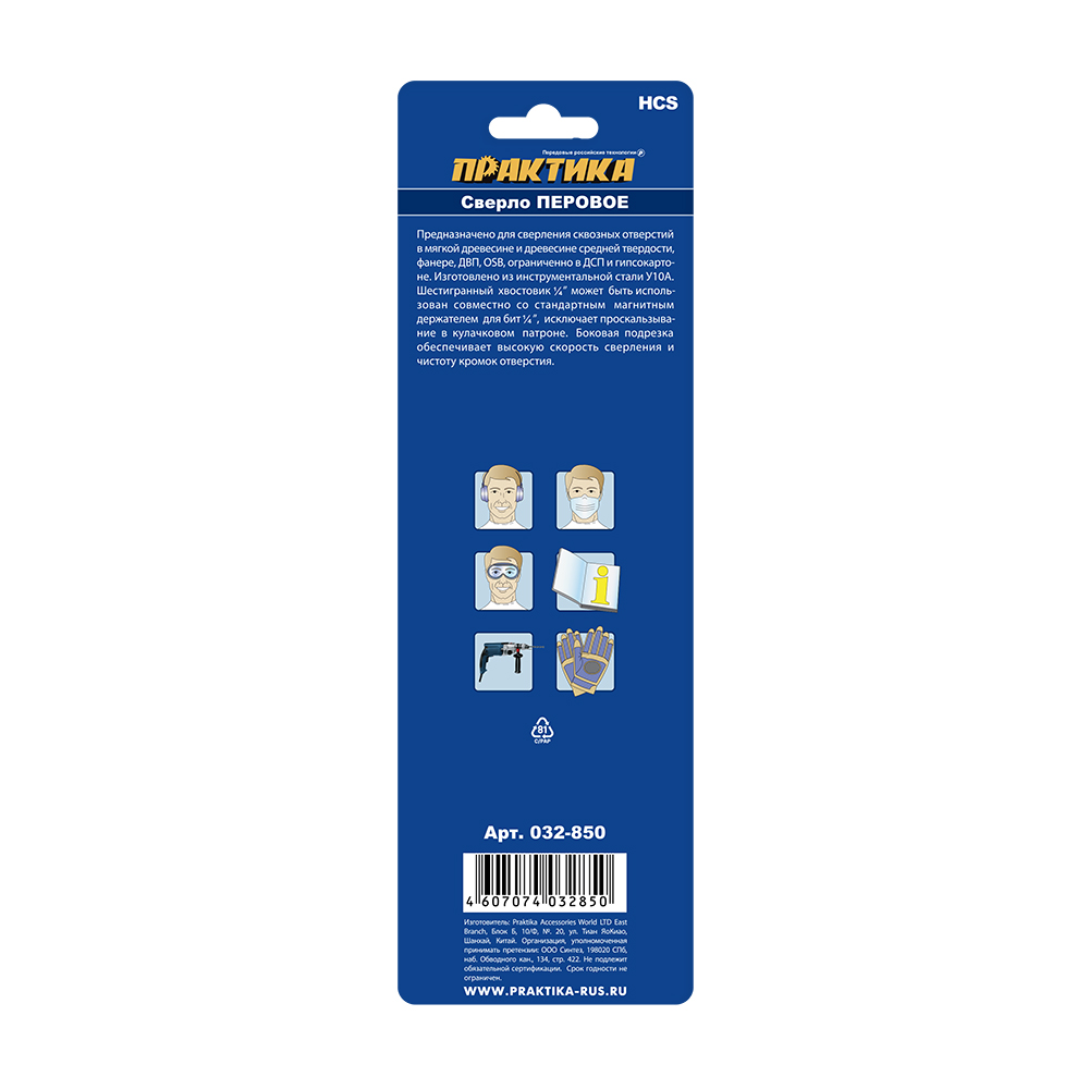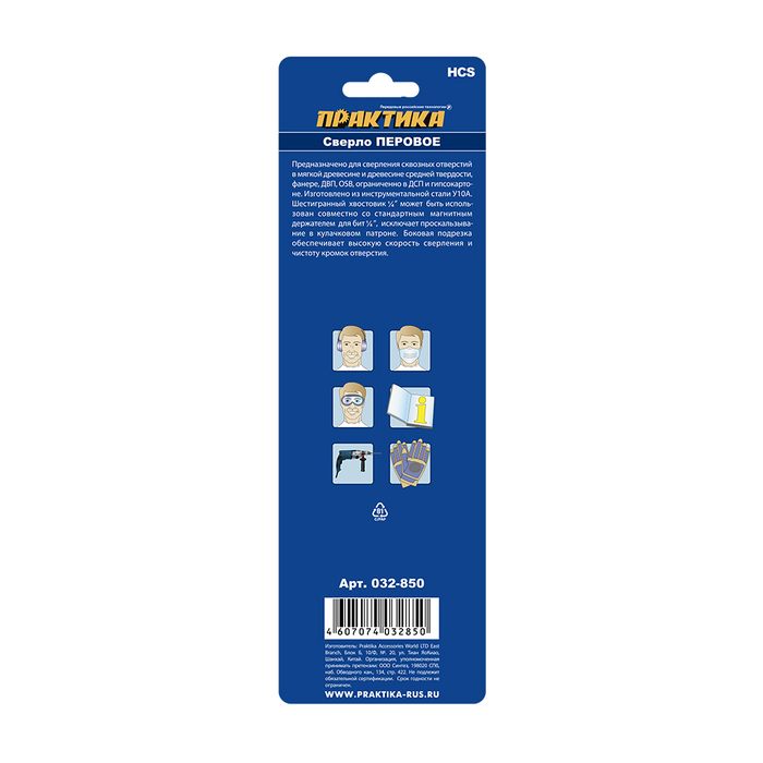 Сверло по дереву перовое ПРАКТИКА 38 х 152 мм (1шт.) блистер (032-850) - цена, фото, технические характеристики