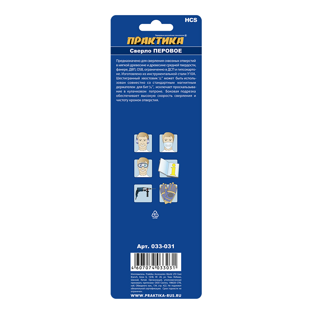 Сверло по дереву перовое ПРАКТИКА 40 х 152 мм (1шт.) блистер (033-031) - цена, фото, технические характеристики