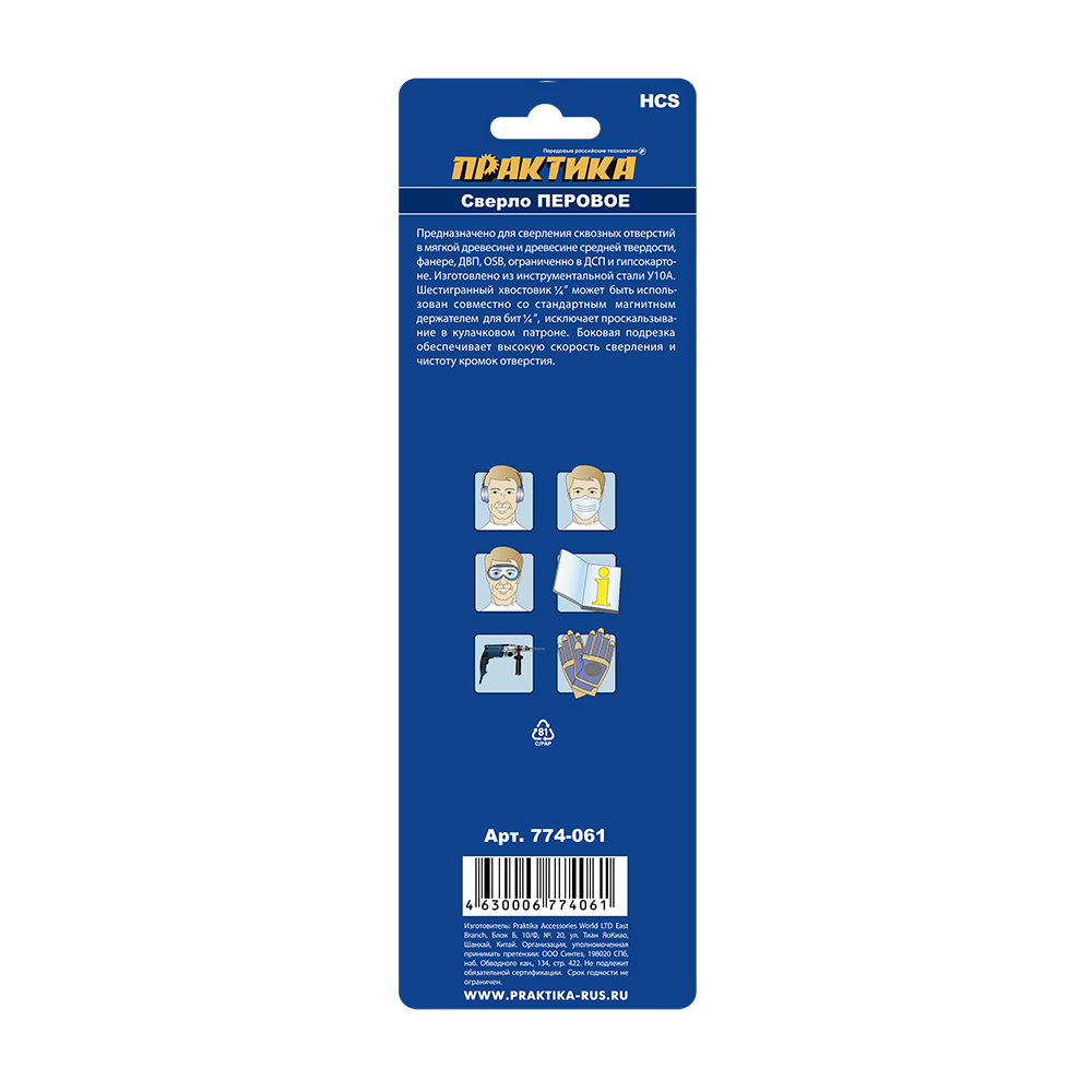 Сверло по дереву перовое ПРАКТИКА 45 х 152 мм (1шт.) блистер (774-061) - цена, фото, технические характеристики