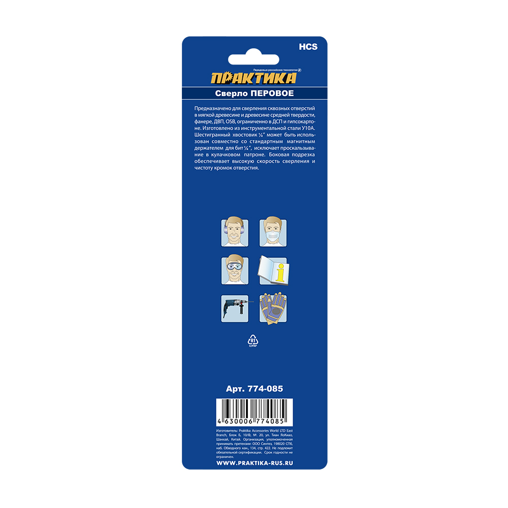 Сверло по дереву перовое ПРАКТИКА 55 х 152 мм (1шт.) блистер (774-085) - цена, фото, технические характеристики