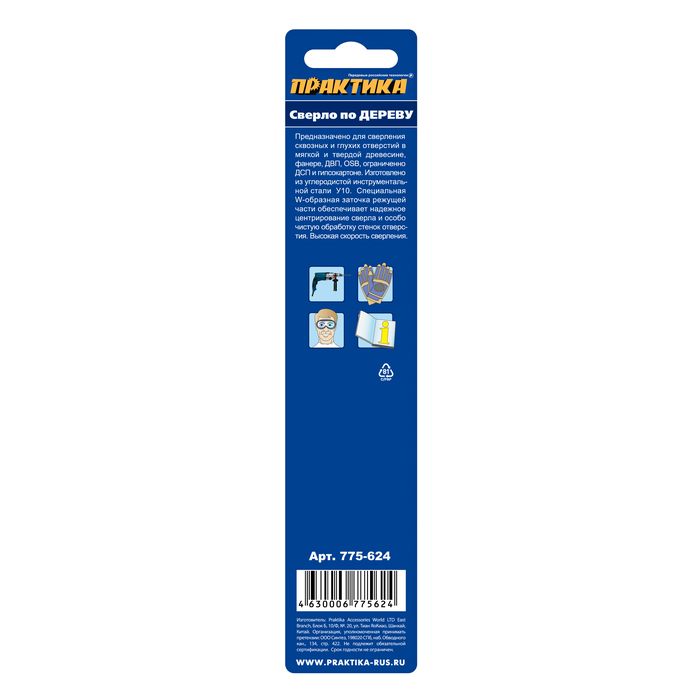 Сверло по дереву ПРАКТИКА 10 х 120 мм, W-заточка, (1шт.) блистер, серия Профи (775-624) - цена, фото, технические характеристики