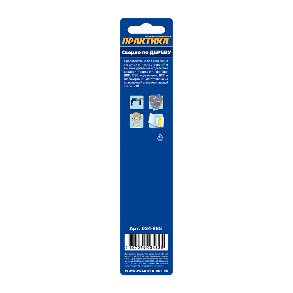 Сверло по дереву ПРАКТИКА 12 х 151 мм, серия Мастер (1шт.) блистер (034-885) - цена, фото, технические характеристики