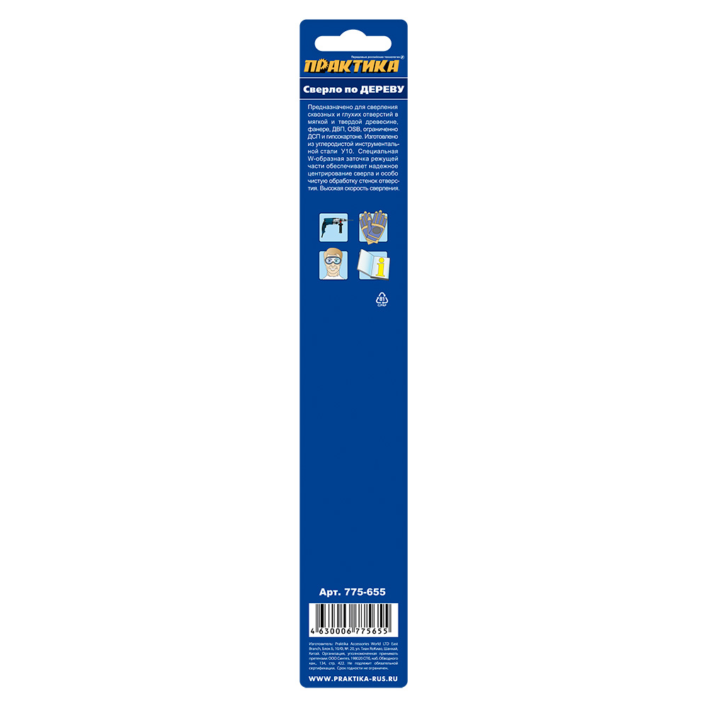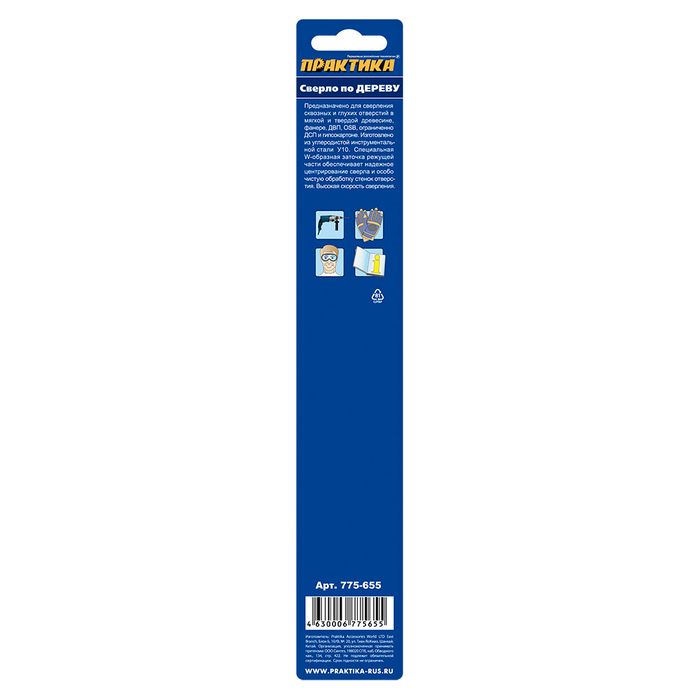 Сверло по дереву ПРАКТИКА 12 х 200 мм, W-заточка, (1шт.) блистер, серия Профи (775-655) - цена, фото, технические характеристики