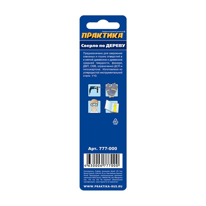Сверло по дереву ПРАКТИКА 3 x 61 мм, серия Мастер (1шт.) блистер (777-000) (1шт.) блистер (777-000)