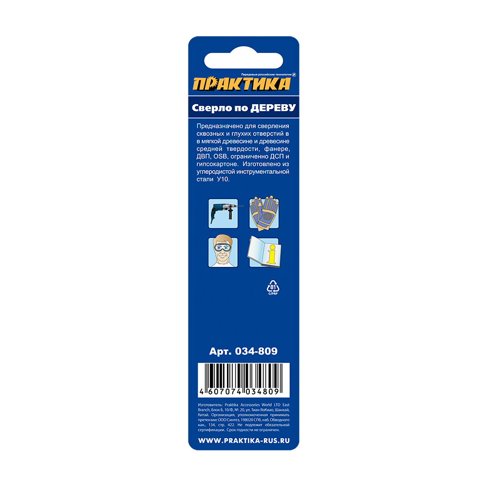Сверло по дереву ПРАКТИКА 4 х 75 мм, серия Мастер (1шт.) блистер (034-809) (1шт.) блистер (034-809)