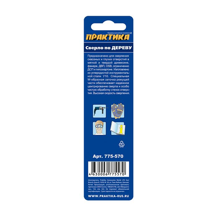 Сверло по дереву ПРАКТИКА 5 х 85 мм, W-заточка, (1шт.) блистер, серия Профи (775-570) W-заточка, (1шт.) блистер, серия Профи